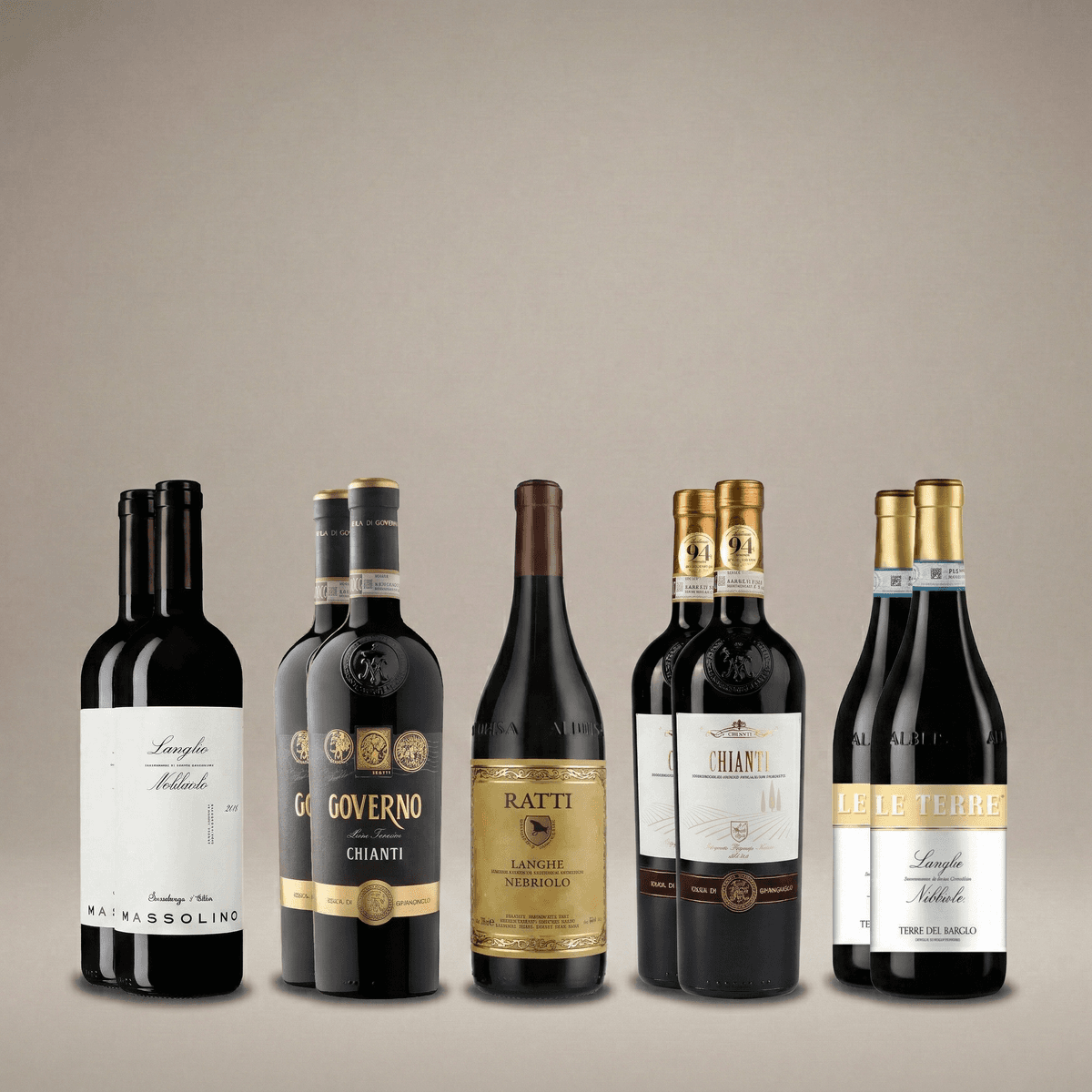 Lådan bjuder på eleganta Nebbiolo-viner från producenter som Massolino och Ratti, kända för sin kraftfulla struktur. Som kontrast ingår fylliga viner från Toscana, där Governo-metoden ger en mjuk profil.